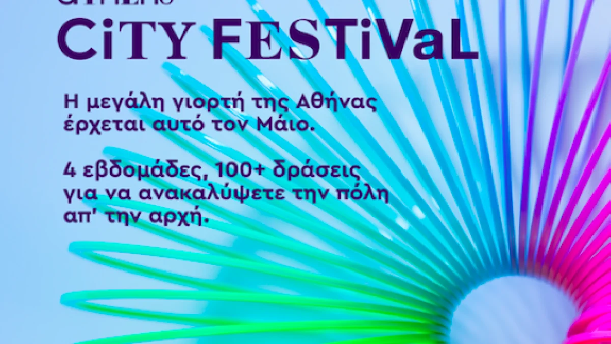 Το πρώτο ανοιχτό Φεστιβάλ της Αθήνας με την υπογραφή του Δήμου Αθηναίων κάνει πρεμιέρα τον Μάιο στην πρωτεύουσα. Το This is Athens City Festival* είναι μία γιορτή για όλους τους Αθηναίους και τους επισκέπτες της πόλης, με περισσότερες από 100 δράσεις από τον χώρο του πολιτισμού, της ψυχαγωγίας, της γαστρονομίας και του αθλητισμού.