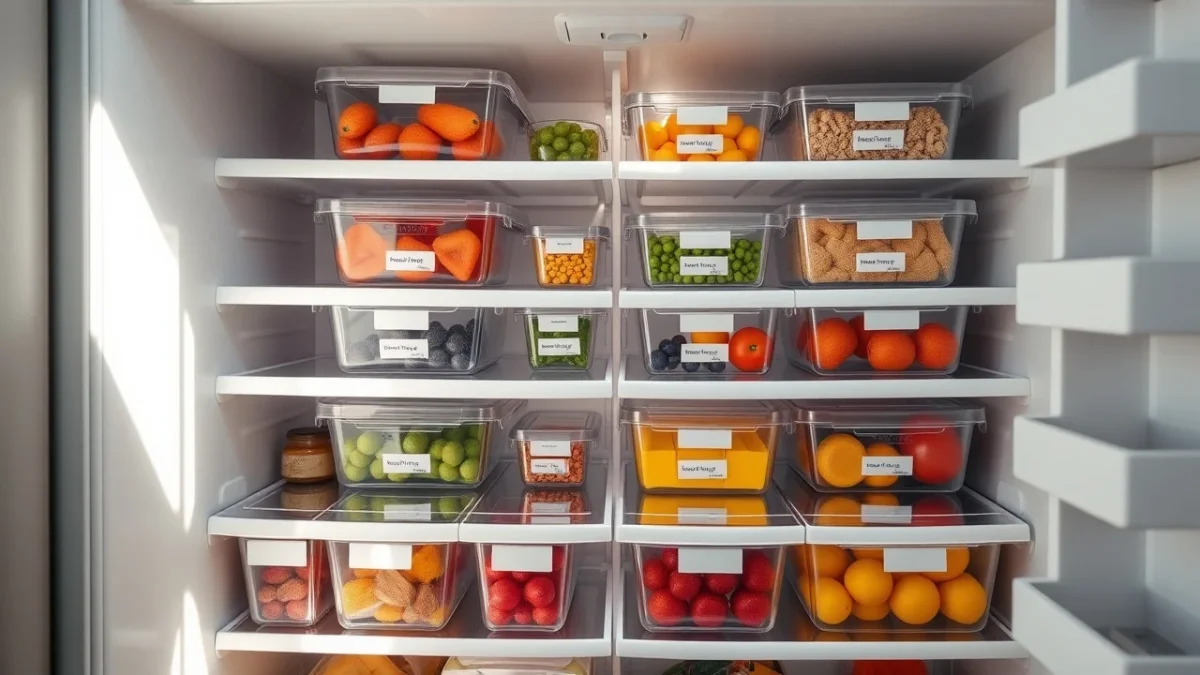 Στην κατάψυξη, η στοίβαξη είναι ακόμα πιο σημαντική. Χρησιμοποίησε επίπεδα δοχεία που μπαίνουν το ένα πάνω στο άλλο. Τα σακουλάκια τροφίμων είναι επίσης πολύ βολικά, ειδικά για μερίδες.