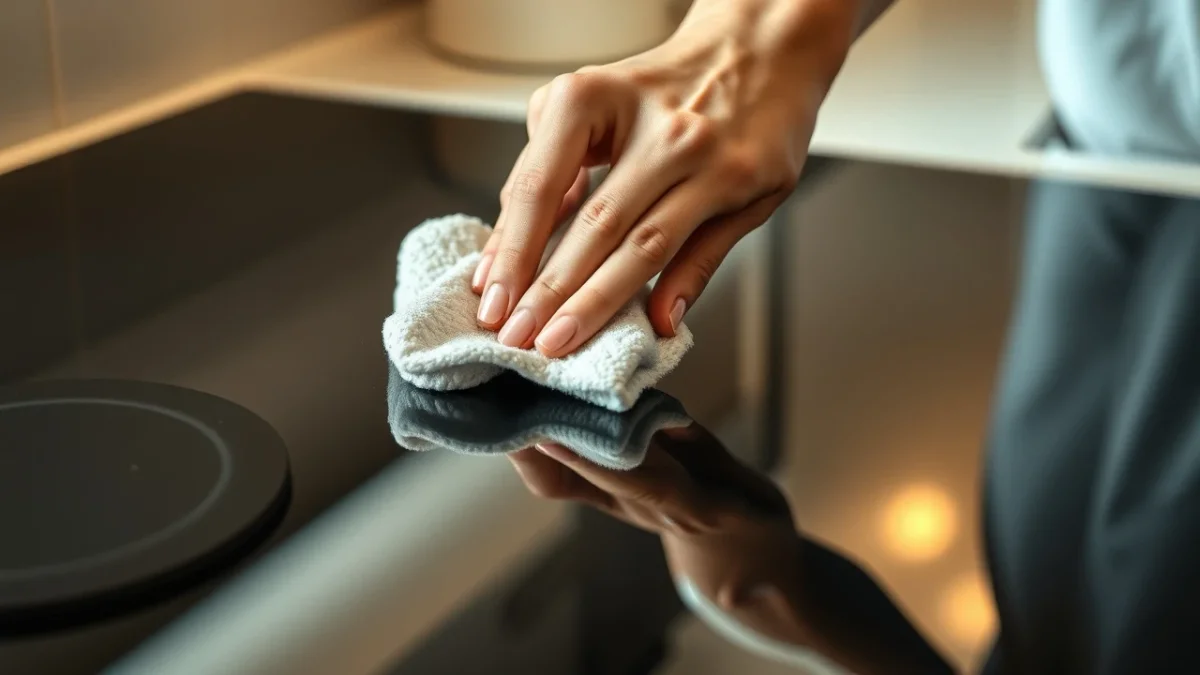 Αφού βεβαιωθείς ότι η εστία είναι κρύα, βρέξε ένα μαλακό πανί μικροϊνών με ζεστό νερό. Μπορείς να προσθέσεις μια σταγόνα υγρό πιάτων αν υπάρχει λιπαρότητα. Πέρασε απαλά την επιφάνεια, χωρίς να τρίβεις δυνατά. Στέγνωσε αμέσως με ένα άλλο στεγνό πανί μικροϊνών για να αποφύγεις τα σημάδια από το νερό.