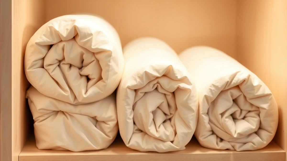 Αφού έχεις διπλώσει τα παπλώματά σου με τη μέθοδο του ρολού, έρχεται η σειρά της τοποθέτησης. Εδώ, η λογική είναι απλή: τα πιο βαριά και ογκώδη κάτω, τα πιο ελαφριά και μικρά πάνω.