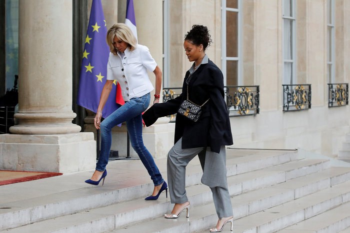 Τη Rihanna υποδέχτηκε με θέρμη η Πρώτη Κυρία της Γαλλίας Μπριζίτ Τρονιέ. Η σύζυγος του Macron είχε μια σύντομη συνομιλία με την Rihanna η οποία της εξήγησε το ρόλο της ως επικεφαλής του φιλανθρωπικού ιδρύματος Clara Lionel.