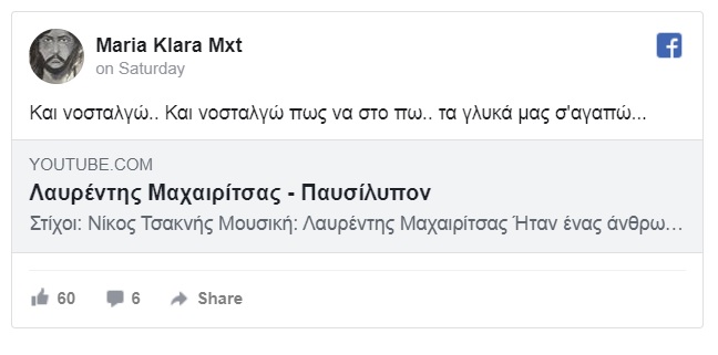 «Και νοσταλγώ.. Και νοσταλγώ πως να στο πω.. τα γλυκά μας σ’αγαπώ..», έγραψε χαρακτηριστικά στη λεζάντα που το συνόδευε.