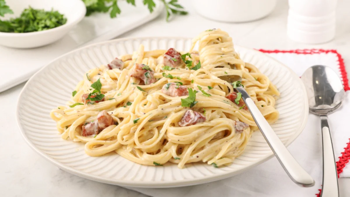 Με μία κουτάλα της σούπας παίρνουμε περίπου 150 γρ. από το νερό που βράζουν τα μακαρόνια και τα ρίχνουμε σιγά σιγά στο μπολ με τα αυγά ανακατεύοντας συνεχώς.
