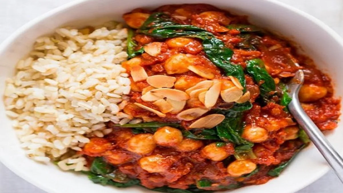 Λαχταριστά ρεβίθια με κόκκινη σάλτσα και αρωματικό σπανάκι με μπαχαρικά