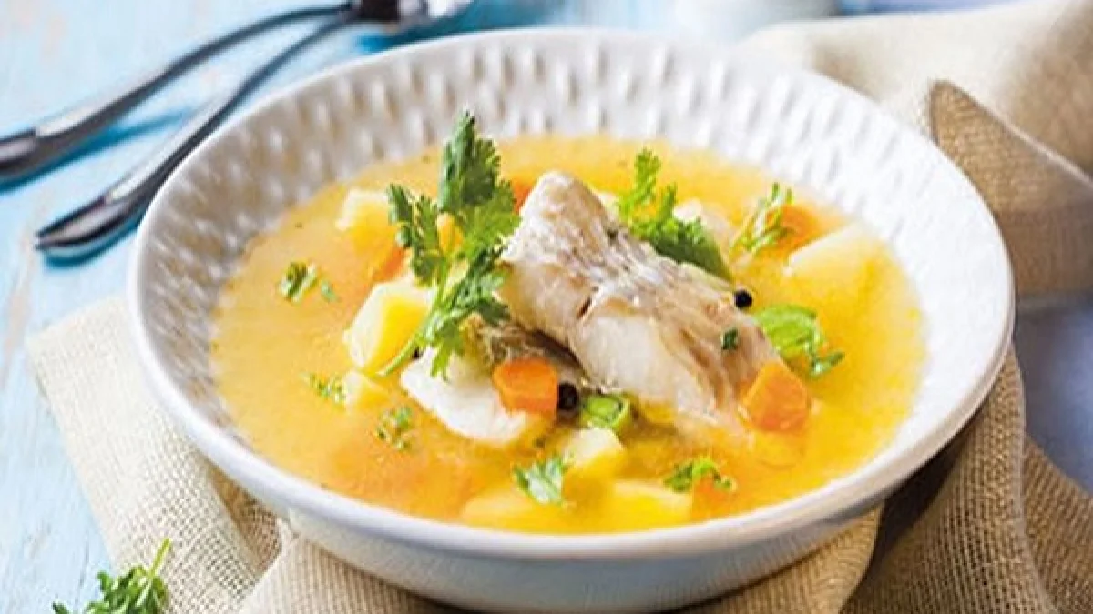 Στο μεταξύ λιώνετε με ένα πιρούνι ή στο μούλτι μερικά από τα λαχανικά και λίγο από το ψάρι και τα προσθέτετε στη σούπα για να χυλώσει.