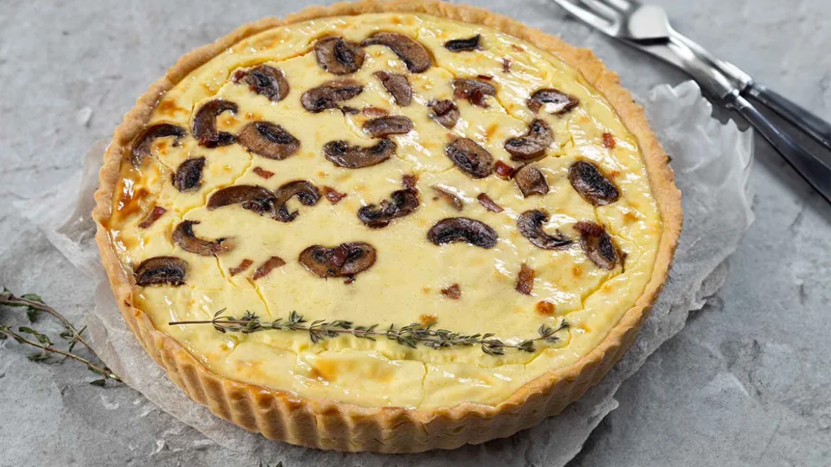 - Απλώνεις το μπέικον πάνω στην ζύμη της τάρτας μέχρι να την καλύψεις