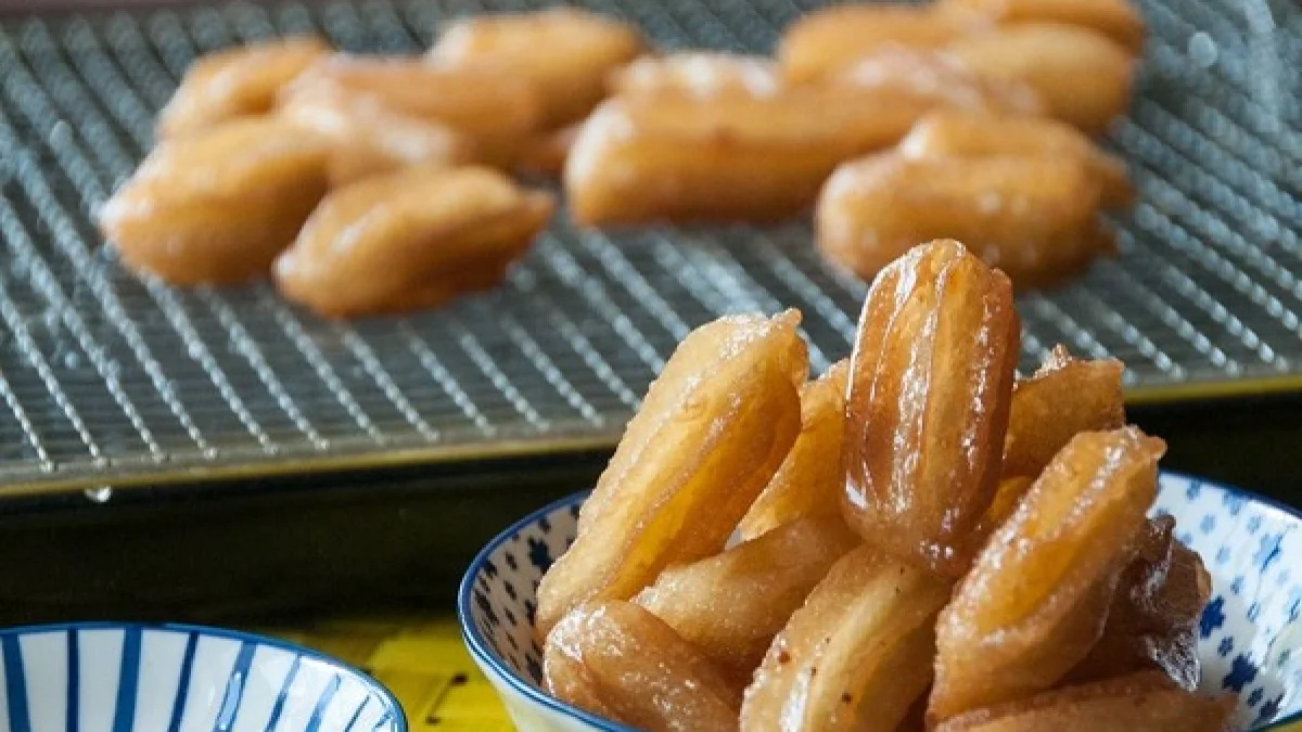 Αφού τα τηγανίσουμε καλά τα βάζουμε σε ένα πιάτο με απορροφητικό χαρτί να στραγγίξουν και αμέσως μετά τα ρίχνουμε στο κατσαρολάκι με το σιρόπι που έχει κρυώσει για περίπου ένα λεπτό. Τέλος με μια κουτάλα τρυπητή τα βγάζουμε από το σιρόπι και τα αποθηκεύουμε σε θερμοκρασία δωματίου.
