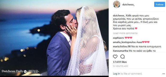 Οι followers της έσπευσαν να τής ευχηθούν τόσο για την ονομαστική εορτή του συζύγου της, όσο και για το μωρό που περιμένουν.