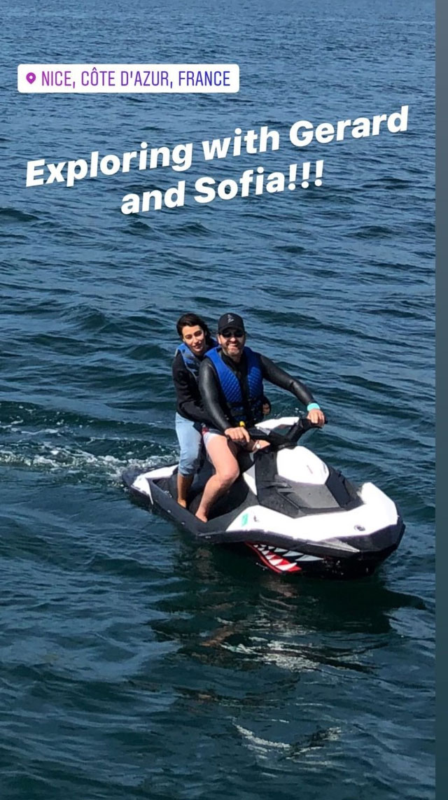 Στο ένα στιγμιότυπο ο Gerard Butler βρίσκεται ξαπλωμένος στην αγκαλιά της Σοφίας, η οποία του χαϊδεύει τα μαλλιά, ενώ σε ένα άλλο οι δυο τους απολαμβάνουν τη θάλασσα, κάνοντας jet ski.